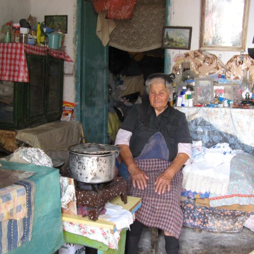 Η Ειρήνη Μαρκουλή γεννήθηκε και μεγάλωσε στη Μεσαριά και ήταν παντρεμένη με το Γιώργο Μαρκουλή τον Ψηλό. Μας μίλησε για τη φτώχεια που αντιμετώπισαν τα παλιά χρόνια στο χωριό και την ανταλλαγή προΪόντων που έκαναν οι άνθρωποι προκειμένου να επιβιώσουν. Ο άντρας της ήταν χτίστης και ειδικευόταν στην κατασκευή τσιμεντόλιθων, οπότε μας περιέγραψε και τη διαδικασία κατασκευής τους.