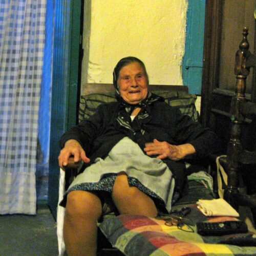 Η Φανή Πρασίνου γεννήθηκε και μεγάλωσε στην Καλοταρίτισσα και είναι μέχρι στιγμής η τελευταία κάτοικος του χωριού. Μιλήσαμε μαζί της ακολουθώντας την καθημερινότητά της. Πρώτα ενώ έβοσκε τα κατσίκια της και έπειτα σε μία βραδινή βεγγέρα παρέα με τον κουνιάδο της Σταύρο Πράσινο και τον ανιψιό της Λευτέρη Πράσινο. Ξεχωρίζει η ιστορία της από την Τουρκοκρατία για το πώς πρωτοκατοικήθηκε η Δονούσα. Και συνεχίζει με πειρατές, ψαράδες, ιστορίες από την καλλιέργεια κρεμμυδιού και καπνού και την Κατοχή. Ιδιαίτερα γλαφυρές είναι οι περιγραφές της για τους παλιούς γάμους που γινόντουσαν στα σπίτια αντί για την εκκλησία.
