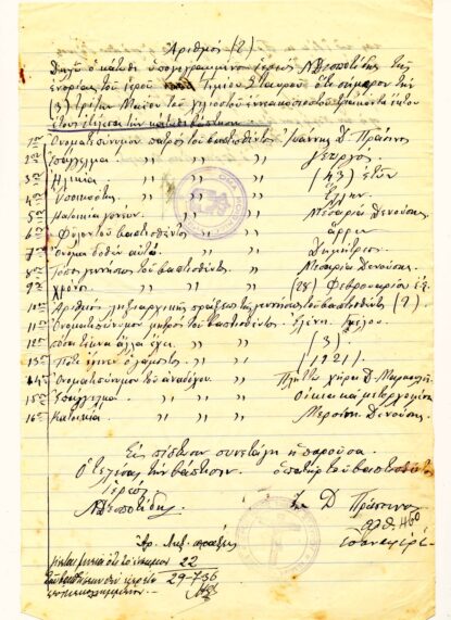 Χειρόγραφα έγγραφα γεννήσεων, θανάτων, γάμων και βαφτίσεων και απλές βεβαιώσεις όπου αποτυπώνονται χρονολογίες, υπογραφές, γραφικοί χαρακτήρες και αιτήματα της εποχής.