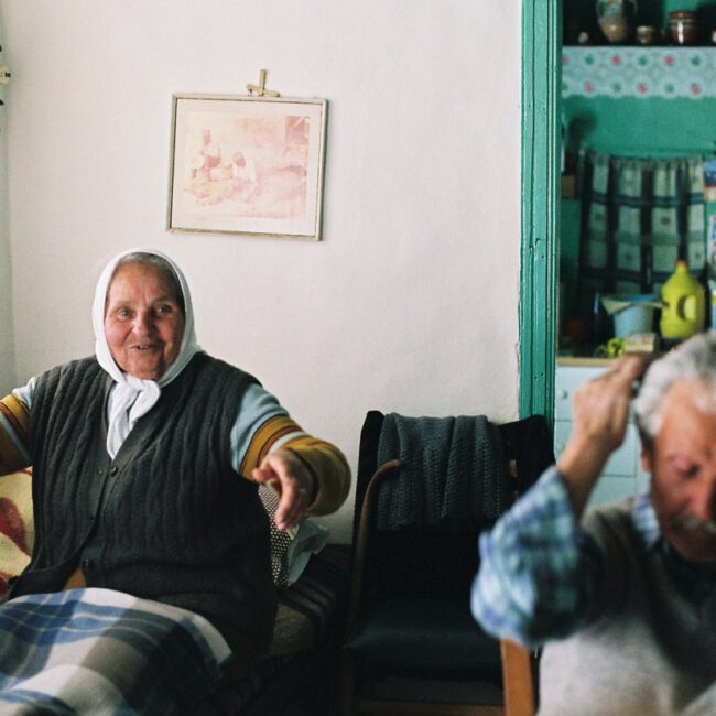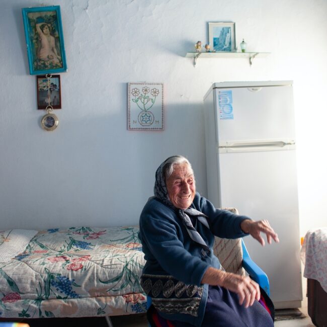 Στ: Στη δε Ηρακλειά […] εκεί ήτανε λοιπόν Εγγλέζοι. Είχανε ασύρματο οι οποίοι επικοινωνούσανε και παίρνανε αθρώπους για τη Μέση Ανατολή. Ήταν να φύω κι εγώ, δε σου είπα; Και δε μ` άφησε να φύω η Καλλιόπη, η γιαγιά σου. Πήγε και κρεμάστηκε από πάνω μου, «πού πας;» μου λέει. Ε, και με πήε πίσω στο δάσκαλο και μου λέει, «Πού πας; Πεινάς;» λέει. «Αυτοί», λέει, «που πάνε, δεν πάνε για ηρωισμό», μου λέει […]. «Είσαι 17 χρονώ παιδί, θα πας», λέει, «στη Μέση Ανατολή, να πας να πολεμήσεις εναντίων των Γερμανών, θα πάς με τους Εγγλέζους, θα ταλαιπωρηθείς» κι έτσι κάθησα. Φύανε πολλοί από δω, αλλά αυτοί πεινούσανε και φύανε, είχε πέσει πείνα εδώ. Το μόνο σπίτι το οποίο δεν πείνασε είμαστε εμείς, […] των δασκάλων και η γιαγιά σου. Οι άλλοι πεινούσανε, μας κλέβανε. Είχαμε εδώ, βάζαμε λάχανα, κουνουπίδια. Κάθε πρωί που ερχόμουνα εγώ, έλεγα «Μπαμπά πήρανε…» «Δε βαριέσαι,» λέει, «πεινάνε.» Έχουμε δεκαοχτώ χρόνια διαφορά με τη γιαγιά, μ` είχε μεγαλώσει και με πήγε τότε η συχωρεμένη στο προπάππου σου το δάσκαλο και τότε μου είπε την παροιμία […], μου λέει «πού πας;» Μου λέει. «Θα γίνεις ήρωας, θα πας στη Μέση Ανατολή; Αυτοί», λέει, «που πάνε, αυτοί πεινάνε. Εσύ, δοξα τω θεώ, έχουμε τα πάντα.» Και πράγματι στην Κατοχή δεν πεινάσαμε. Τα δύο σπίτια τα δικά μας και στην Καλοταρίτισσα.